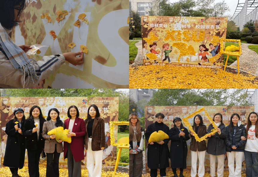 秋光为幕,金叶作笺。活动现场,师生们俯身拾起散落的银杏叶,以拼贴勾勒“XISU”轮廓,携手在叶丛中写下对校园的寄语——“愿此秋色,长驻心间”。当最后一抹金黄落定,这幅由师生共同织就的“校园秋色图”,不仅是秋日里最温暖的集体诗篇,更是一次生动的美育实践,让师生们在协作中感知自然之美与集体创造的力量。